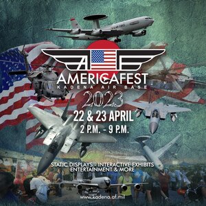 An infographic displays information on America Fest 2023 at Kadena Air Base, Japan. America Fest 2023 is an opportunity for the local community to meet U.S service members, see advanced static aircraft up close, learn about our mission and experience American culture from the diverse people that