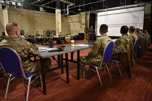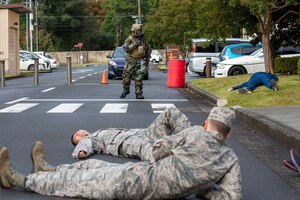 Lt. Gen. Ricky Rupp, U.S. Forces Japan and 5th Air Force commander, thanks event organizers following an immersion tour of the base, at Yokota Air Base, Japan, Oct. 5, 2021. An immersion tour gives commanders and senior leaders the opportunity to learn more about the unit's mission. (U.S. Air Force