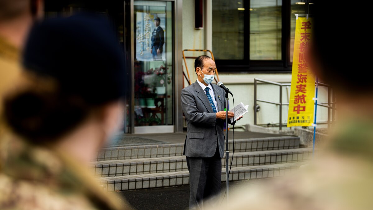 Misawa community collaboration Published Dec. 21, 2021 By Staff Sgt. Jao’Torey Johnson 35th Fighter Wing Public Affairs MISAWA AIR BASE, Japan -- Service members, community members, and Misawa City police officers stand in formation during the End-of-Year Traffic Safety and Crime Prevention Campaign in Misawa City, Japan, Dec. 16, 2021. During the campaign, 35th Fighter Wing, Misawa City and police leadership distributed flyerss with information on what to do if anyone in the community finds themselves in an unsafe environment. (U.S. Air Force photo by Staff Sgt. Jao’Torey Johnson)
