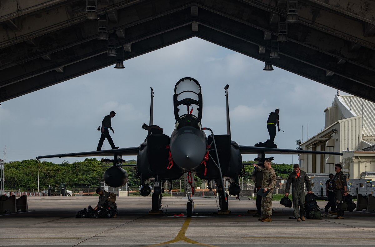Additional Strike Eagles arrive to aid Kadena Eagle phased return Published April 22, 2023 18th Wing Public Affairs KADENA AIR BASE, Japan -- U.S. Air Force F-15E Strike Eagles from the 391st Fighter Squadron out of Mountain Home Air Force Base, Idaho, arrived at Kadena Air Base, Japan, on April 22, 2023, to ensure continuous fighter presence through the phased return of Kadena’s fleet of F-15C/D Eagles to the U.S. As the 18th Wing continues the phased return of Kadena’s fleet of Eagles, the Department of Defense will maintain a steady-state fighter presence in the region by temporarily deploying newer and more advanced aircraft to backfill the F-15s as they retrograde. While deployed to the Keystone of the Pacific, the Mountain Home Strike Eagles will work in conjunction with F-35 Lightning II’s deployed from Eielson Air Force Base, Alaska, F-15E Strike Eagles deployed from Seymour Johnson, N.C., and the remaining F-15C/D Eagles at Kadena to ensure continued steady-state fighter capabilities in the region. Together the diverse array of fighters, alongside joint and allied forces, strengthen operational readiness to defend Japan while ensuring a free and open Indo-Pacific through a robust presence of dynamic fighter aircraft. “In coordination with our allies and partners, the Bold Tigers are here to support the 18th Wing to project decisive airpower as well as reinforce regional stability and security," said U.S. Air Force Lt. Col Jeremiah "Utah" King, 391st FS commander. "One of America's greatest strengths has always been our network of partnerships and alliances; We're excited to be here in Japan operating side-by-side with our partners in the Indo-Pacific.” Modernizing capabilities in the Indo-Pacific theater remains a top priority. The transition to more capable aircraft at Kadena exemplifies the DoD’s continued commitment to enhancing posture while building on the strong foundation of the Alliance with Japan. “Between our permanent party Airmen and our deployed forces, we are well postured to deter, deny, and if necessary, defeat any threat to regional stability and the U.S. homeland,” said U.S. Air Force Brig. Gen. David S. Eaglin, 18th WG commander. “The robust combat capability here on the Kadena flightline serves as a powerful deterrent to potential adversaries and offers unique integration opportunities with our allies and partners.” Throughout these deployments, the wing will continue to comply with applicable bilateral agreements with the Government of Japan regarding noise abatement. All visiting aircrews are briefed on local noise abatement procedures and mission planners will continue to give due consideration to limit local impacts.