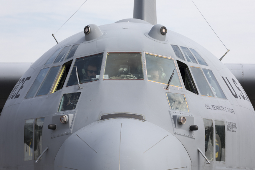 Capt. Thomas Bernard and Capt. Travis Wilkes, both 36th Airlift Squadron C-130H pilots, conduct their preflight checks prior to taking off to perform a tactical training mission at Yokota Air Base, Japan, Oct. 5, 2017. This is the last active duty C-130H Hercules tactical training sortie. (U.S. Air Force photo by Yasuo Osakabe)