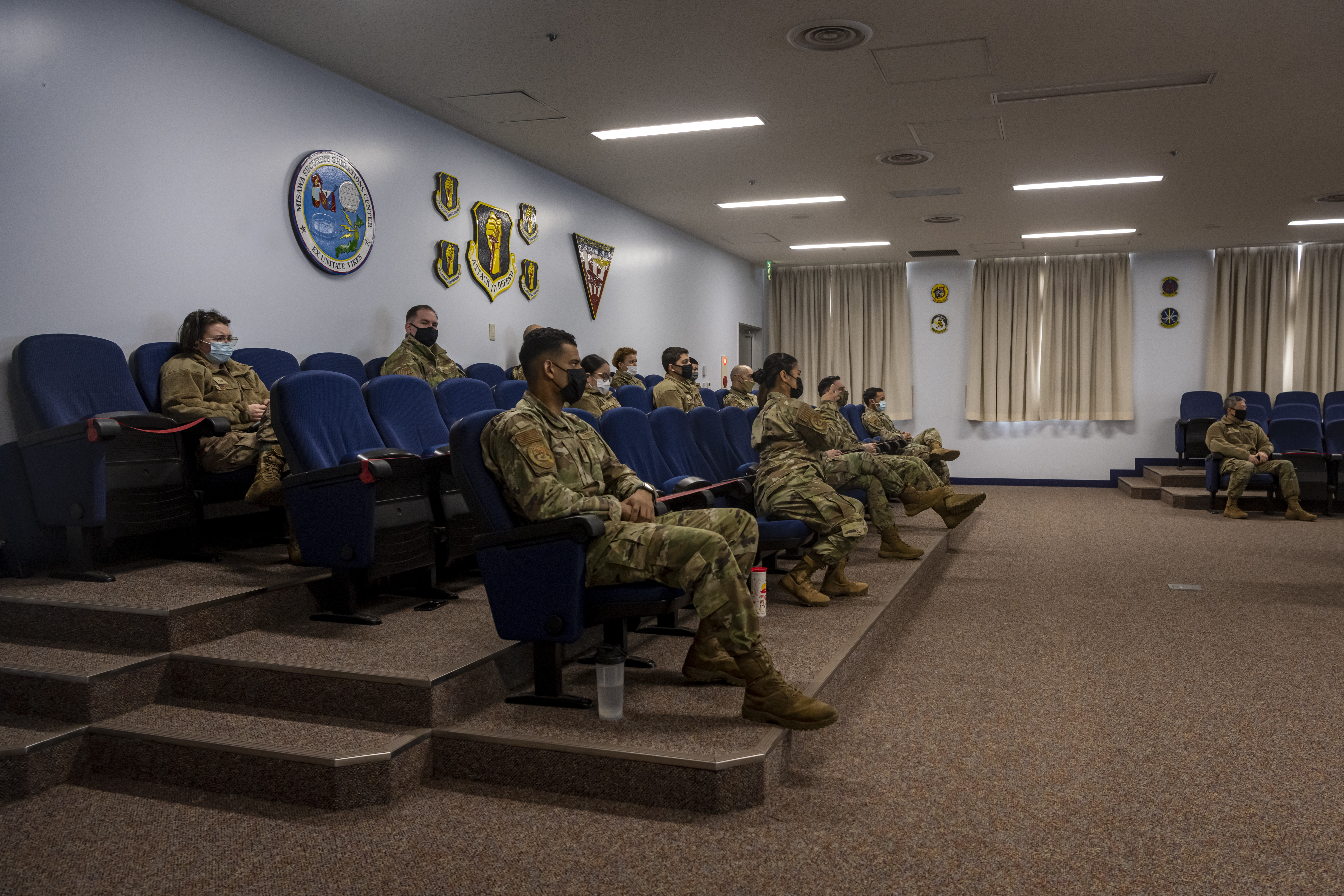 Team Misawa members listen to Air Force Chief of Staff Gen. CQ Brown, Jr., as he discusses the importance of accelerating change during a virtual all-call at Misawa Air Base, Japan, Feb. 8, 2022. In August 2020, Brown published a strategic approach titled Accelerate Change or Lose, detailing how the Air Force must overcome, innovate and succeed within our everyday lives to stay ahead of our near-peer adversaries. (U.S. Air Force photo by Senior Airman Antwain Hanks)